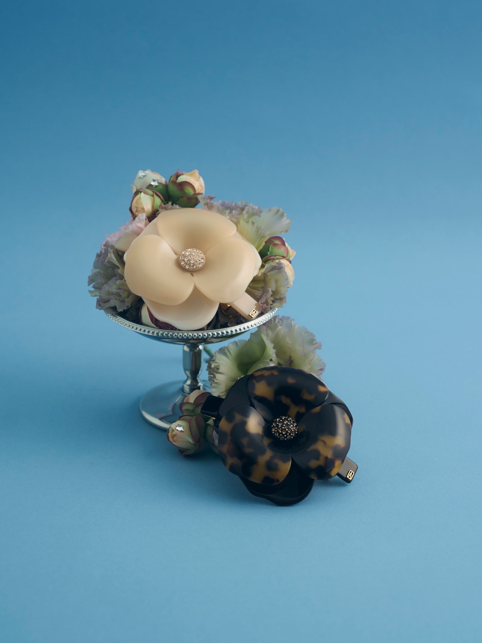 「アレクサンドル ドゥ パリ」を象徴するアイコニックなモチーフのカメリアシリーズから、MUCHA限定の2色が登場。椿の花をモチーフにしたデザインで、シンプルかつ優美な美しさが特徴のバレッタには、アルフォンス・ミュシャが愛した自然の美を反映しています。品よく使いやすいニュアンスカラーのアイボリー×ベージュと、モードなスタイルから和装にもピッタリなTOKYO×ブラックの2色展開です。