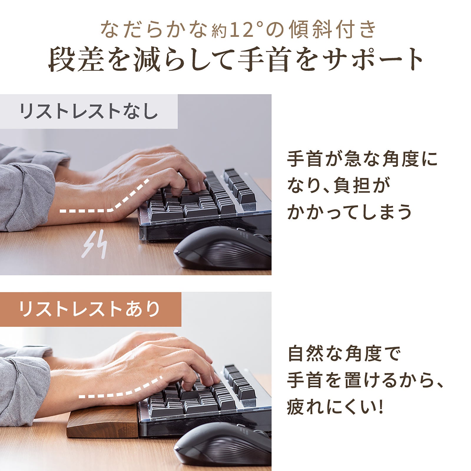 ンワダイレクト』では、手首の角度に適した約12度の傾斜で支えて、自然な状態でキーボード操作ができ、オフィスでも、在宅勤務にも最適な天然木のウォールナットの無垢材を使用した木のぬくもりのあるリストレスト「200-TOK022-M(Mサイズ:約36cm)」、「200-TOK022-L(Lサイズ:約44cm)」を発売しました。