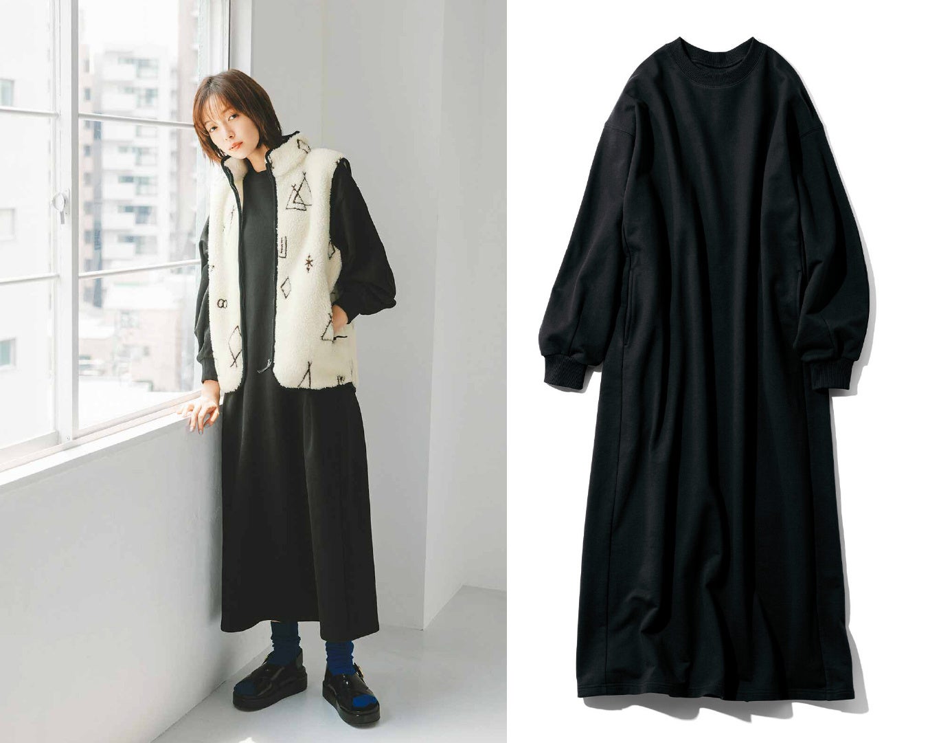 リブ イン コンフォート 栞里ちゃんとつくった シルエットにこだわった 着心地らくちん 裏毛デザインワンピース