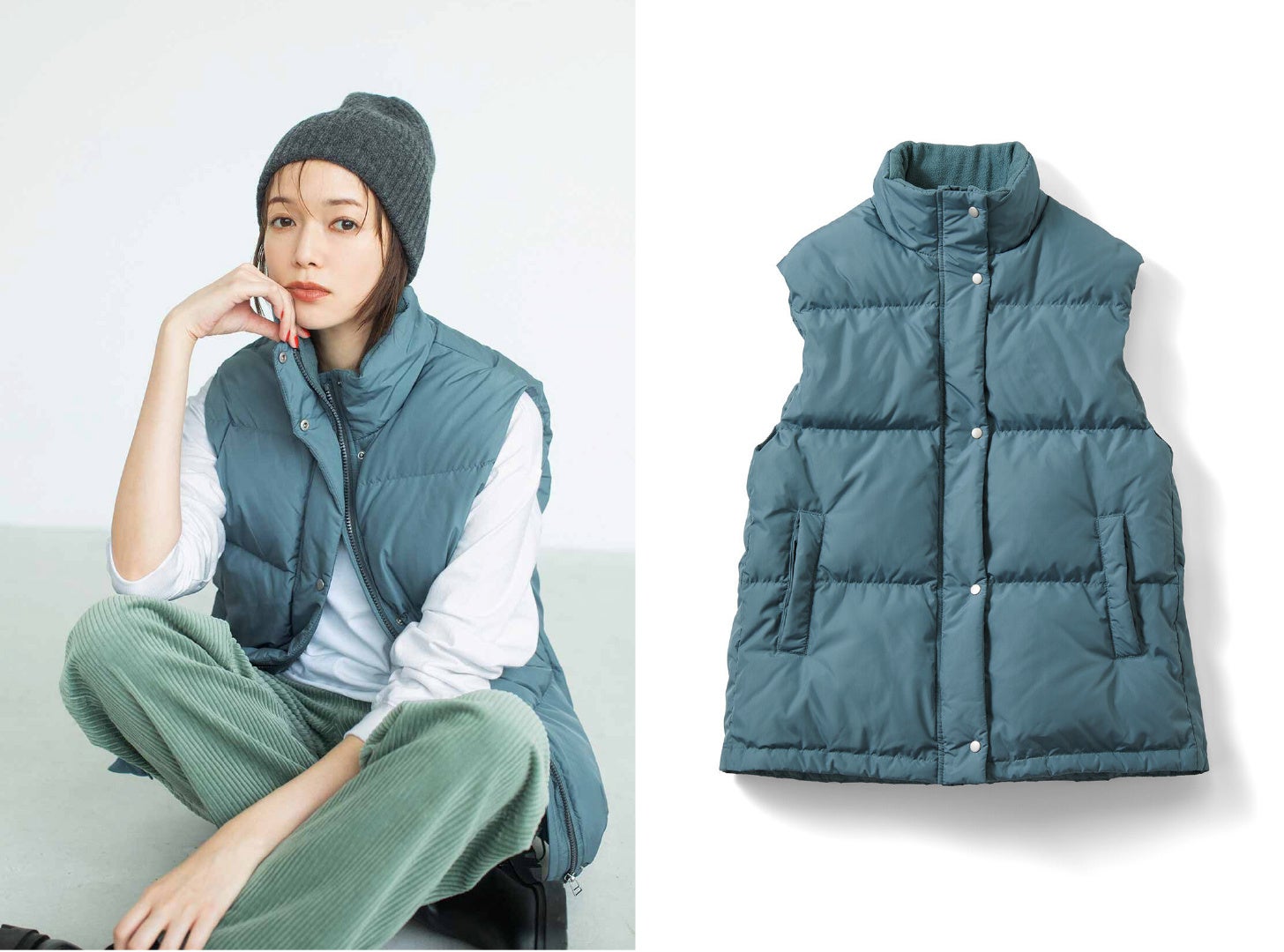リブ イン コンフォート 栞里ちゃんとつくった ニュアンスカラーのダウンベスト〈ブルーグレー〉