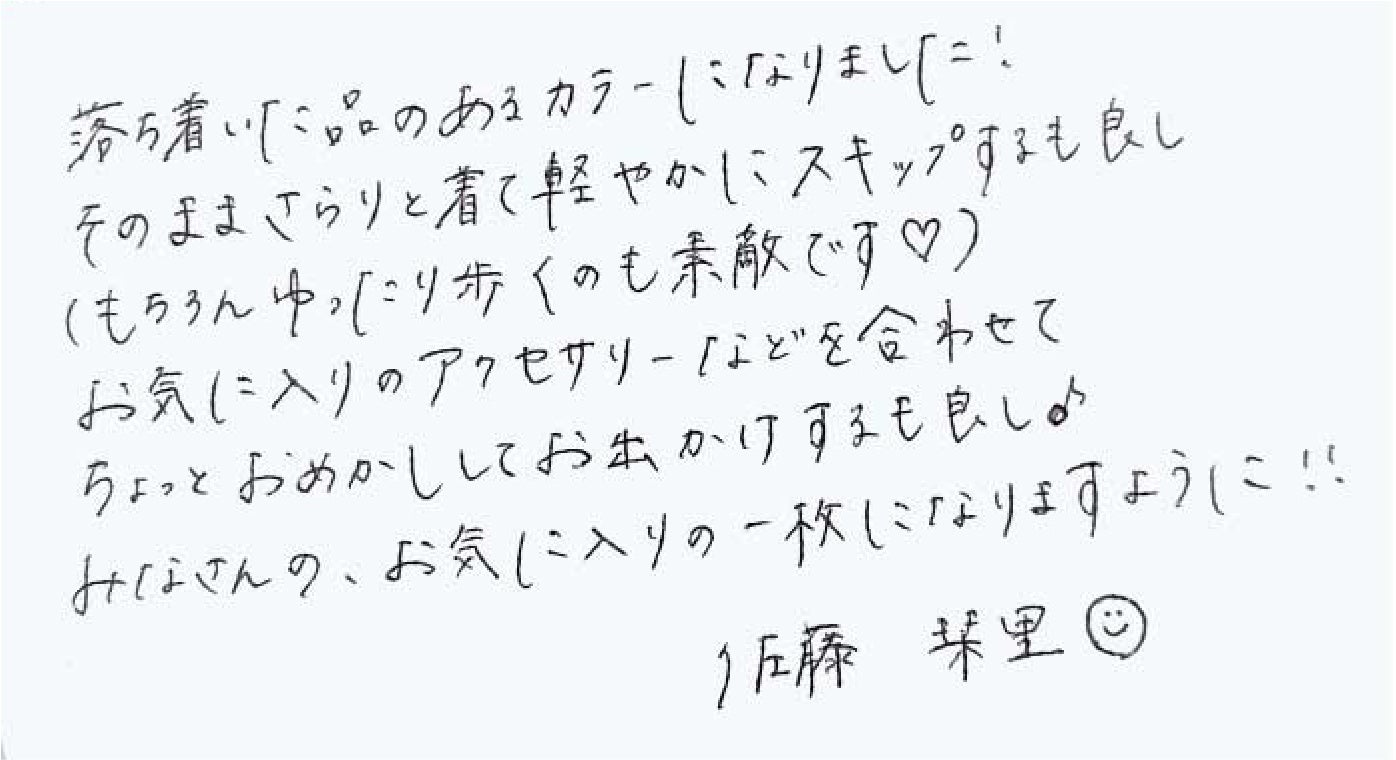 栞里ちゃんと作った人気アイテムの中から、ふんわり広がるフレアシルエットやシワが目立ちにくい生地など、これまで好評だった特徴をそのままに、冬コーデに合わせやすい万能カラーが魅力です。