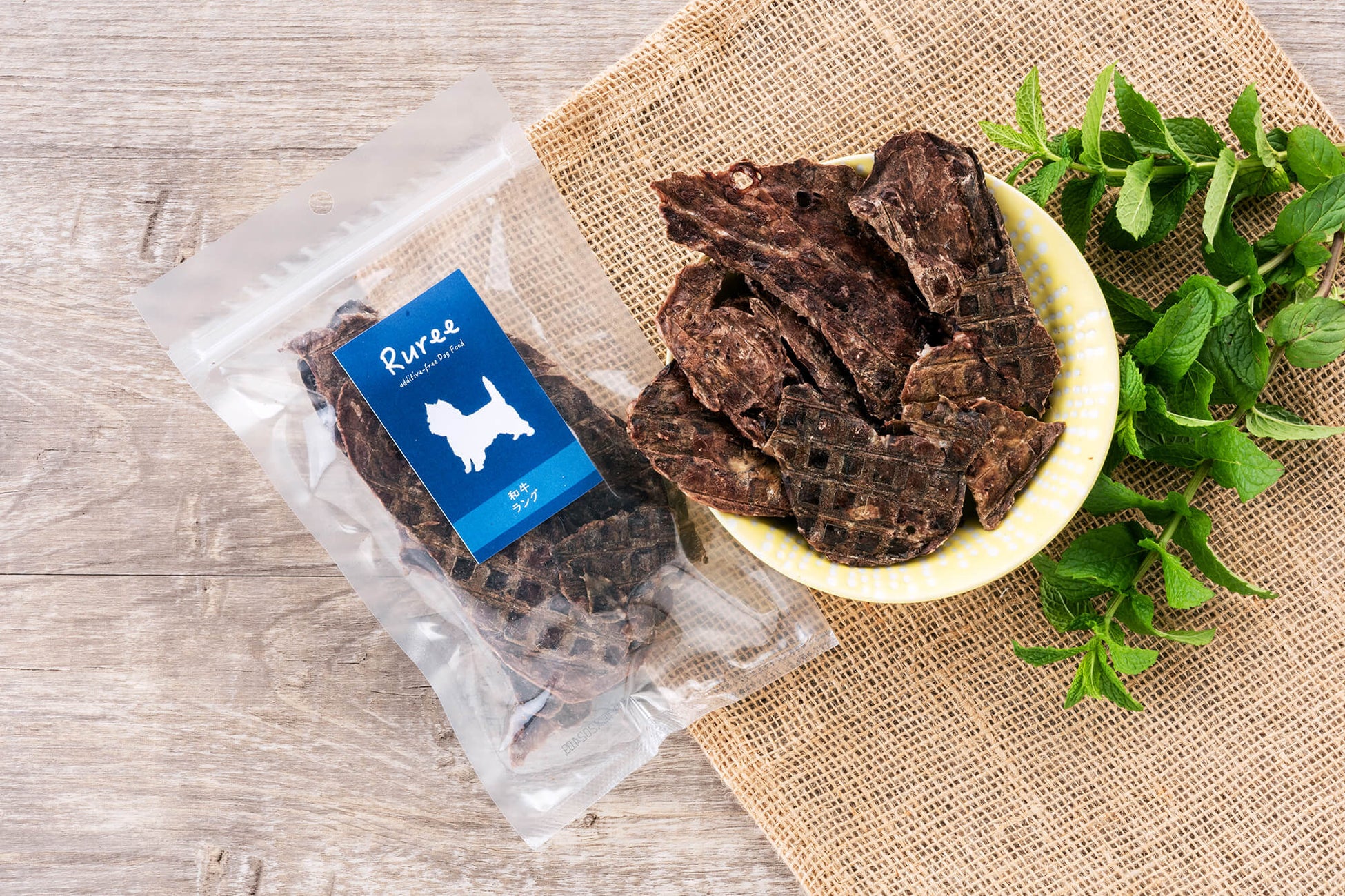 「Ruree」のフードやおやつには添加物が入っていません。素材にもこだわり、モンゴルや北海道などの自然や環境に配慮した農業や牧畜業が行われる地域から天然素材を仕入れて、健康的な食材でつくっています。どれを取ってもワンちゃんにとって、おいしく健康的なフードです。
