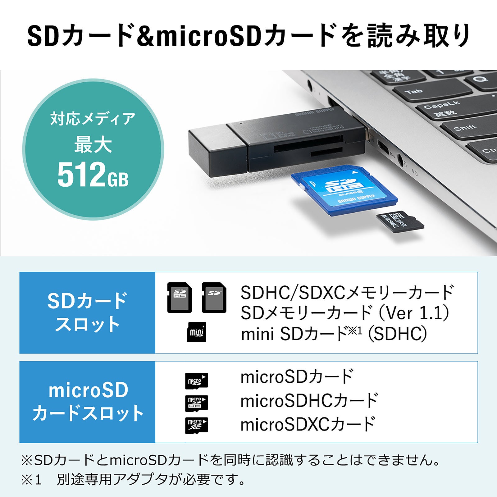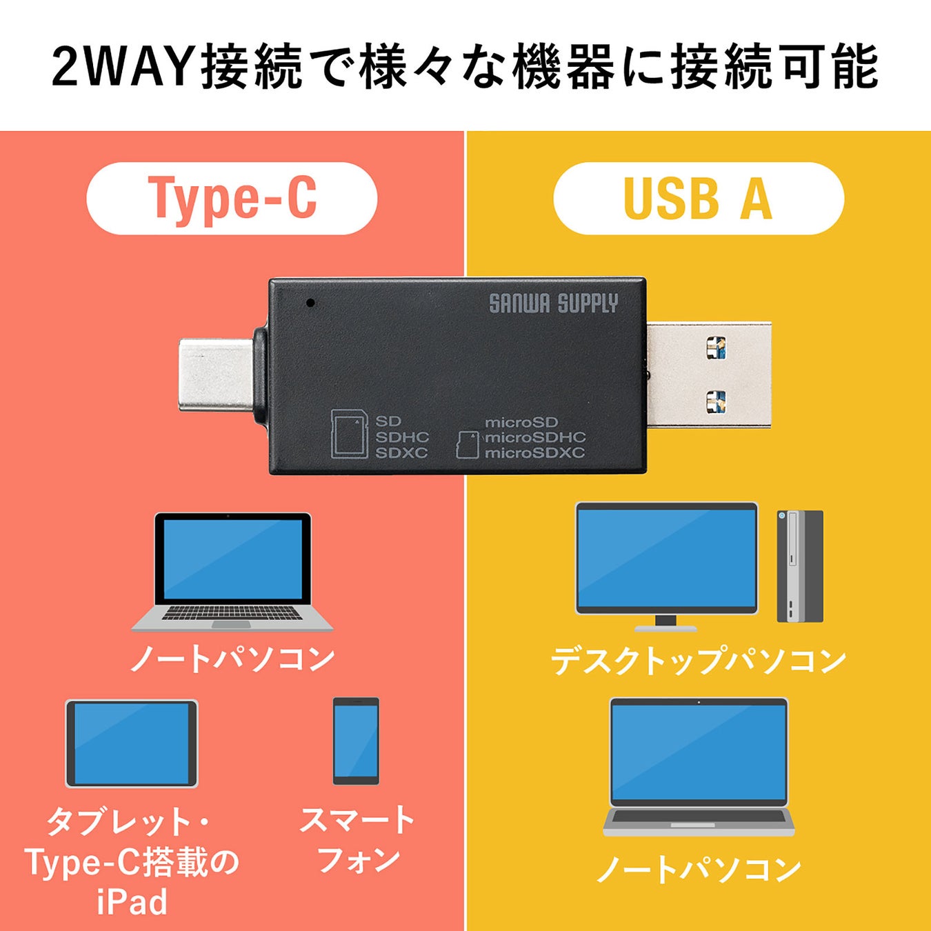 SDカードリーダー microSDカード USB A USB Type-Cコネクタ