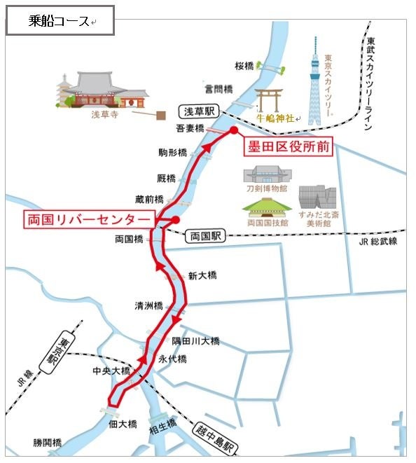 両国リバーセンター受付集合(10時30分)⇒水上バス乗船・両国リバーセンター発着場発(10時45分)~佃大橋付近Uターン~墨田区役所前着・水上バス下船(11時45分)⇒牛嶋神社着(12時) ⇒拝殿にて昇殿参拝・厄除祈願=解散(12時30分)