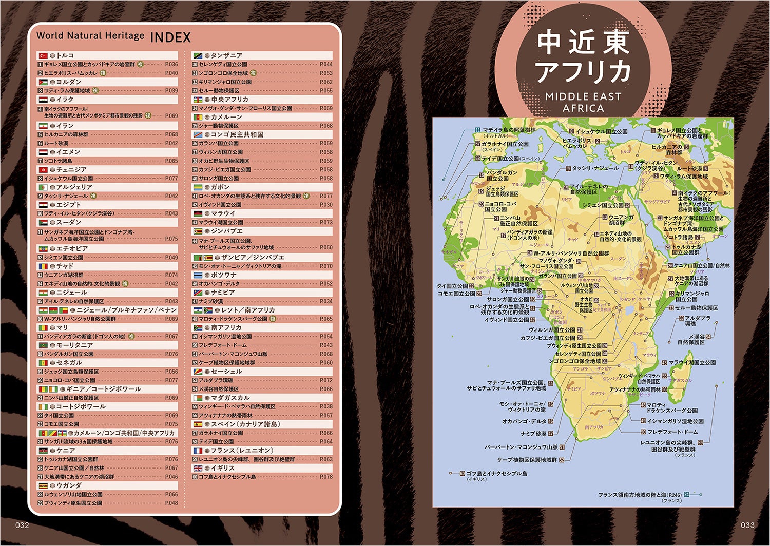 世界6エリアの世界遺産MAPと国別INDEXを掲載。各エリア&各国の自然遺産と複合遺産がひとめでわかります