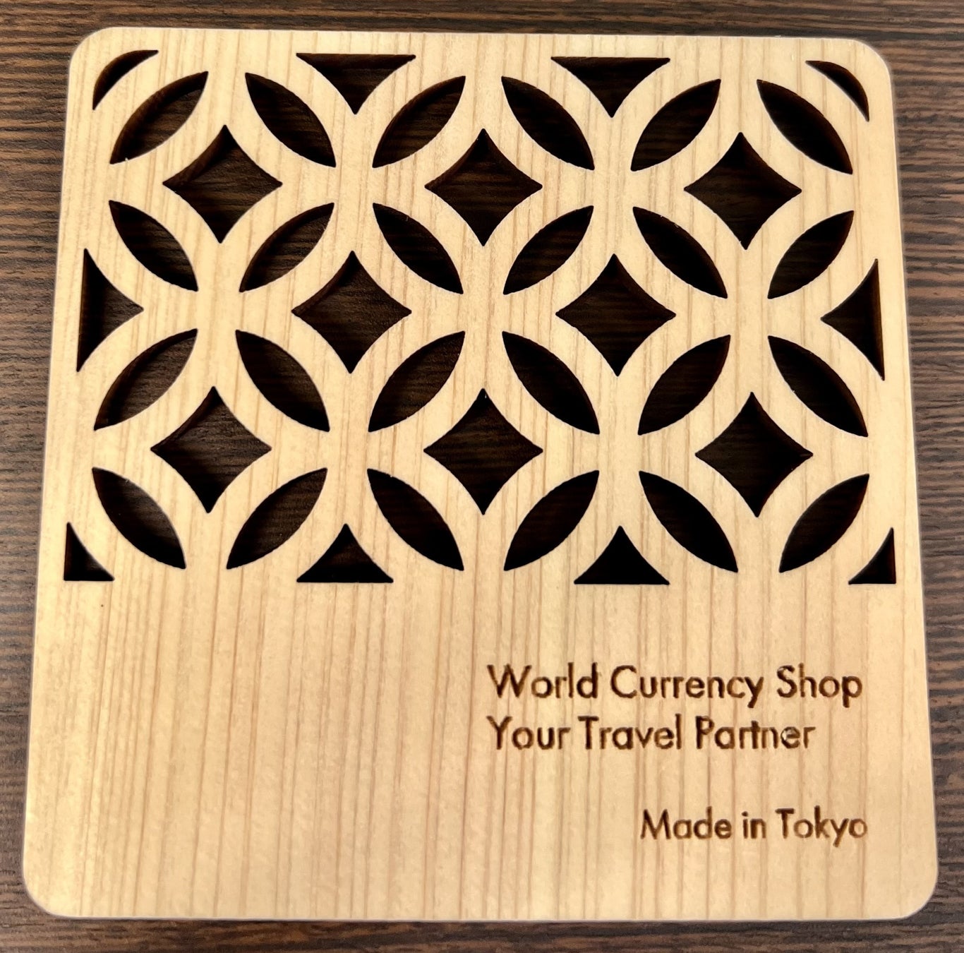 オープン初日(5月27日(火))に外貨両替をしていただいたお客さま先着50名さまに、「ワールドカレンシーショップ」オリジナルのひのきのコースターをプレゼントいたします。