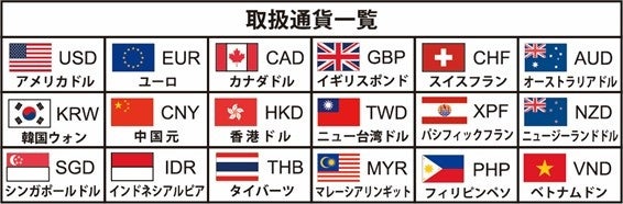 豊富な取扱い通貨