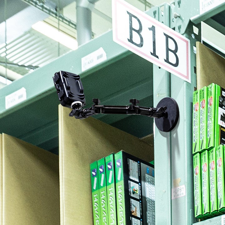強力なマグネット式なので工事車両やスチール製のラック、壁面などに簡単に取り付けられ、しっかり固定できます。