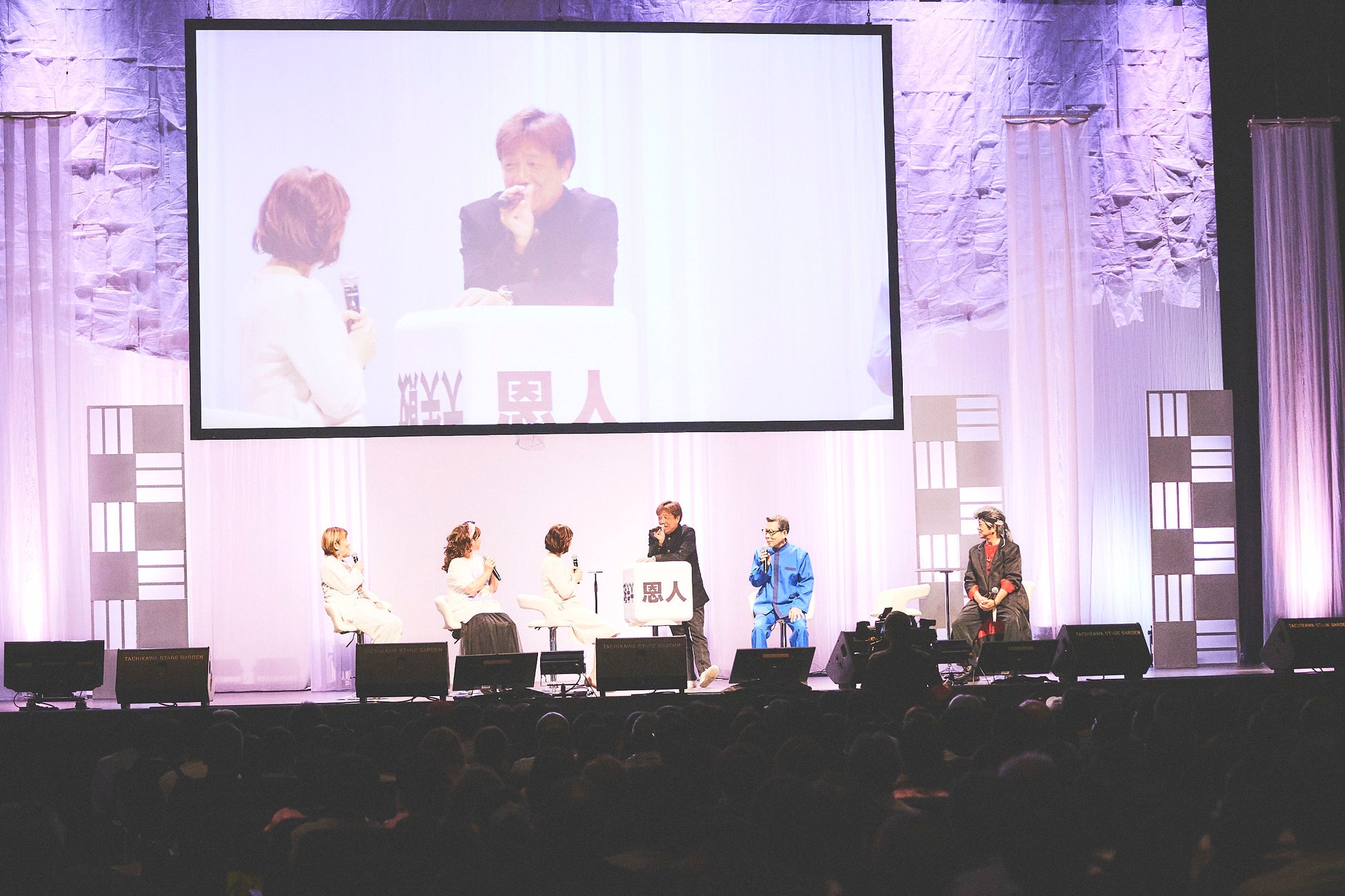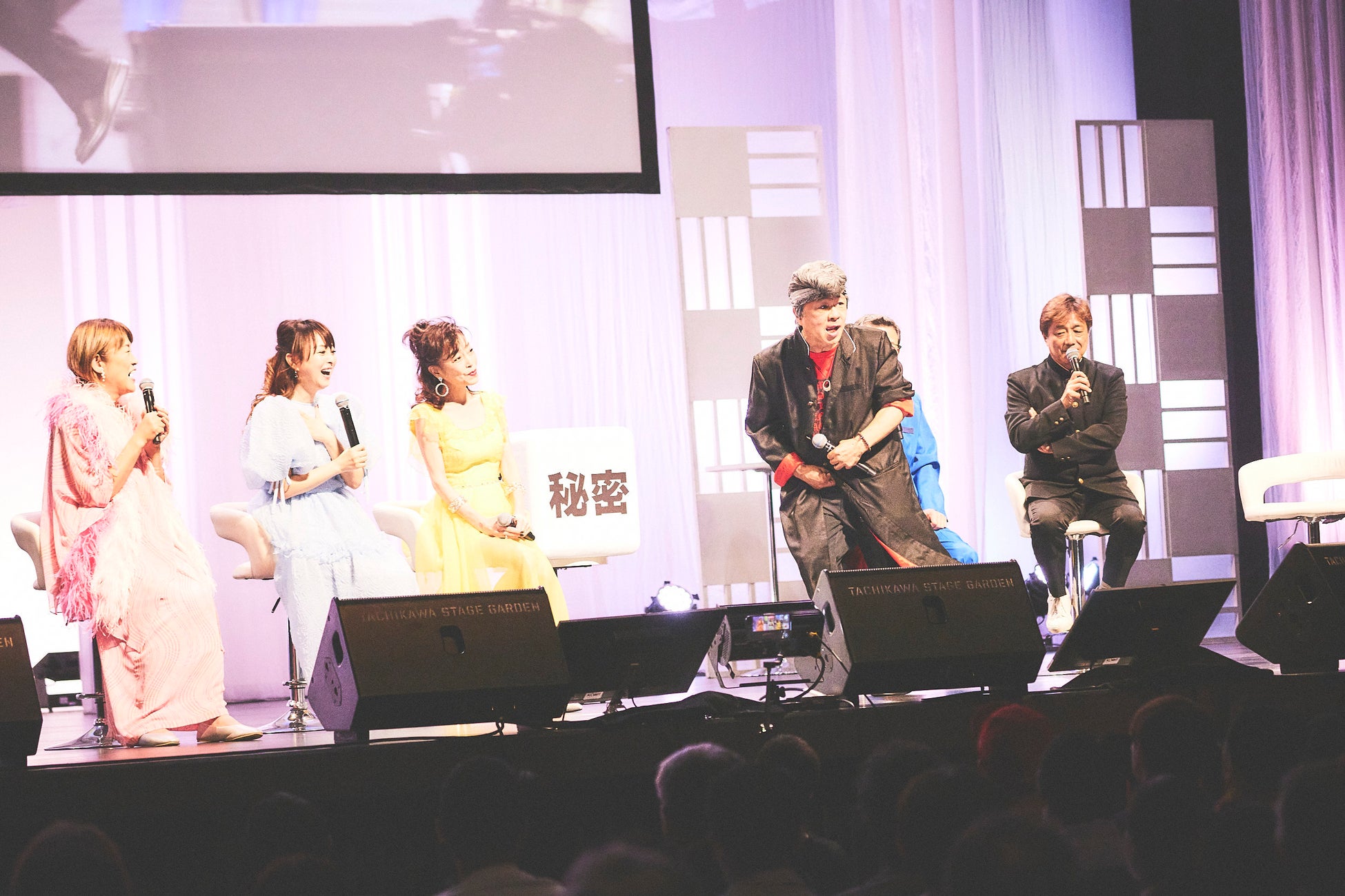柏原、渡辺、イモ欽トリオ、山田による「『昭和百年 時間旅行トーク』 サイコロトーク Part ①」では、「秘密」というテーマで、渡辺が昭和アイドルならではの“引っ越しエピソード”で会場を驚かせると、萩本欽一の家に4年間居候していた西山の“欽ちゃん走り”にまつわる裏話には会場中が興味津々に。ほかにも、イモ欽トリオと柏原が一緒に雑誌を表紙を飾った際の撮影秘話や、『オレたちひょうきん族』収録後に山田宅で開かれたすき焼きパーティーに柏原が参加した際の“恋バナ”など、ここでしか聞けない話が続々。さらに長江が「秘密に近い話」と前置きして、中森明菜との親交を明かすと、山口が「なんで俺に教えてくれなかったんだ!」とビックリしていました。