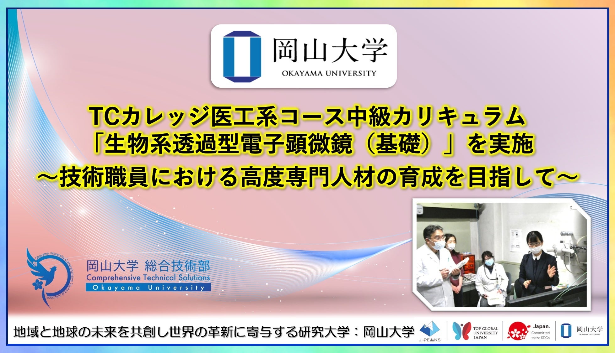 ・【岡山大学】TCカレッジ岡山大学サテライト校「医工系コース」開講 ~技術職員の「高度専門人材養成」を強化促進~