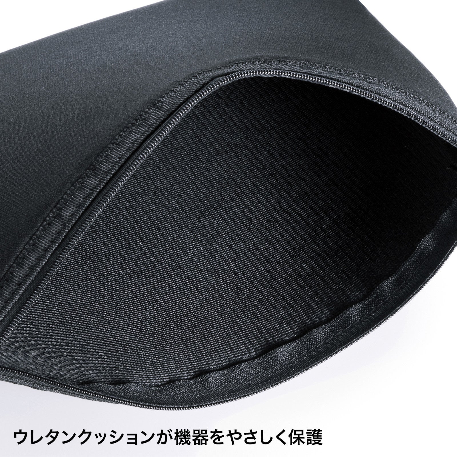 テレワークなどでヘッドセットを持ち運ぶ際に、カバンの中で他のものと接触したり、有線の場合はケーブルが絡まったりするのを防ぎます。軽くてソフトな手触りのウレタンクッションが収納物を優しく保護します。