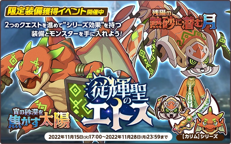 本イベントで獲得できるモンスターと装備品は「カリム」シリーズ効果を持っております。