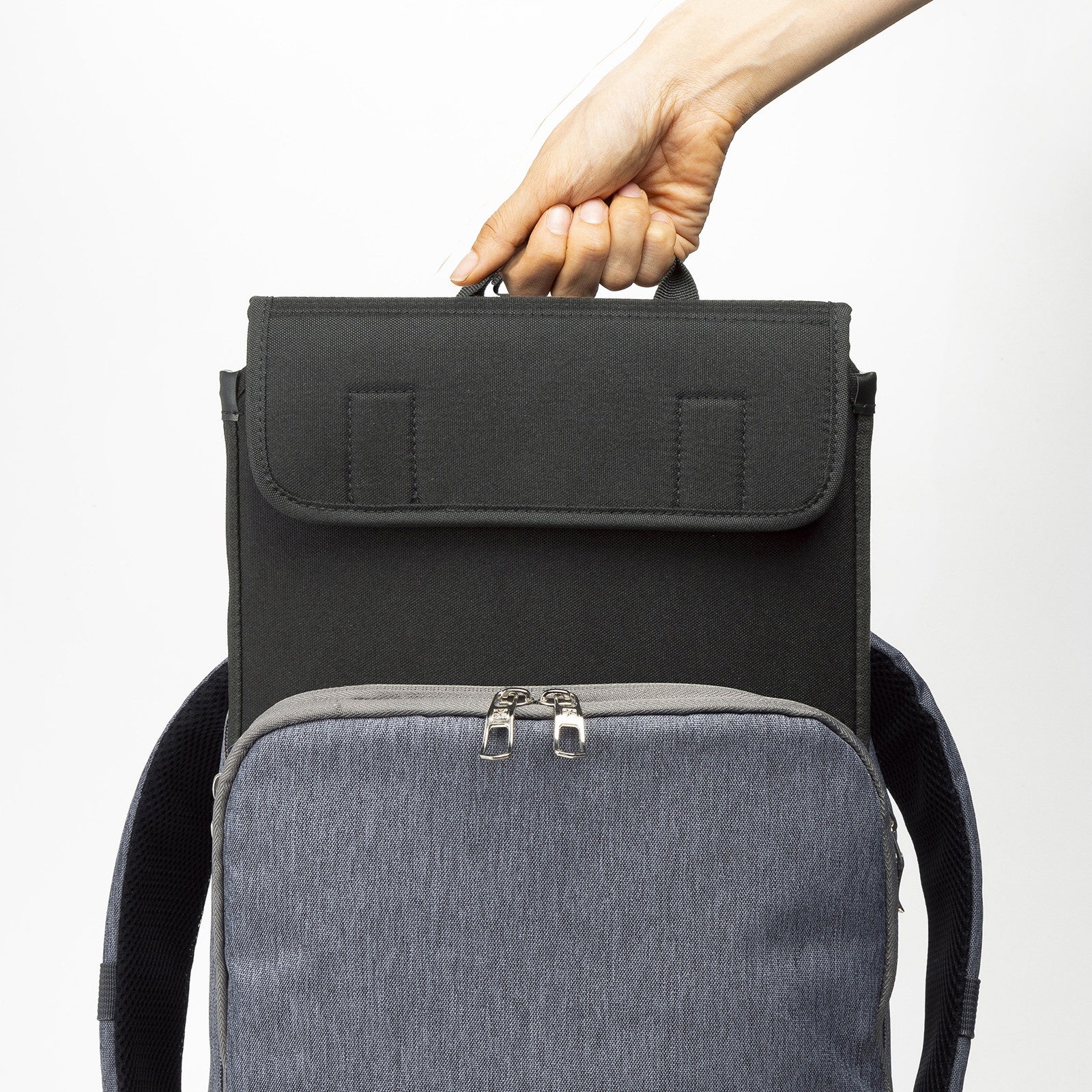 本製品は縦型なので、リュックやカバンへの収納に便利です。またハンドルがついているので、出し入れも簡単にできます。インナーケースとしてだけでなく、機器の持ち運び用ケースとしてもお使いいただけます。