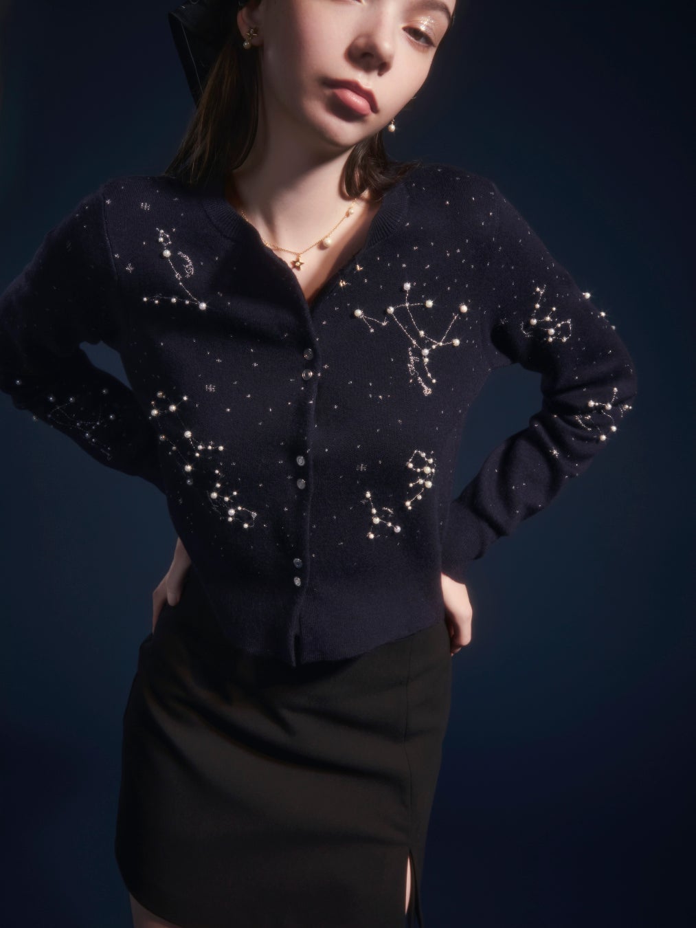 星座モチーフが夜空に星が輝くようにきらめきを添え、