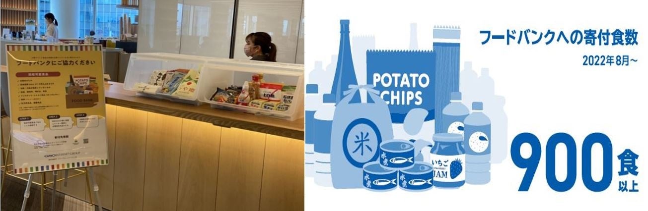 「GMO Yours」のランチメニューを予約制で提供することで、フードロス削減を実現。毎年行われる「世界食料デー月間」においては、フードロスゼロキャンペーンを積極的に展開しています。また、2022年8月より特定非営利活動法人フードバンク渋谷様とともに、渋谷地域で食料支援を必要とする個人・家族に余剰食品を提供するフードバンクの取組を実施しています。