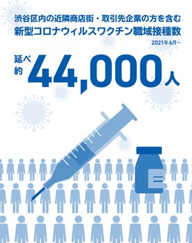 GMOインターネットグループのパートナー(従業員)だけでなく、家族や取引先、渋谷地域の商店街の方々も対象として、2021年6月から延べ44,000人の方に接種を行いました。