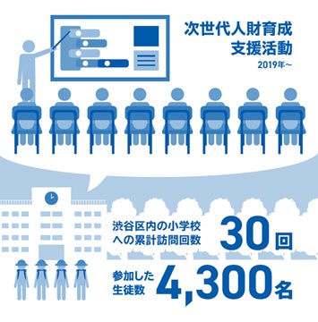 また、渋谷地域に所在する東急株式会社、株式会社サイバーエージェント、株式会社ディー・エヌ・エー、株式会社MIXIとともに、渋谷区教育委員会と連携した次世代人財育成プロジェクト「Kids VALLEY 未来の学びプロジェクト」を2019年度より実施。本プロジェクトにおいて、GMOインターネットグループはこれまでに渋谷区内の公立小学校を累計30回訪問し、延べ4,300名の生徒にプログラミング出張事業を実施しています。