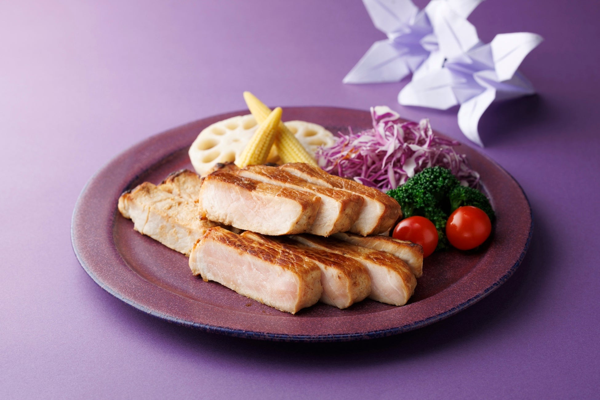 千葉県を代表する銘柄豚肉「恋する豚」をお客様の前で焼き上げ、出来立てを提供します。その味わいは、口当たりなめらかで、脂のほのかな甘みが口の中に広がります。