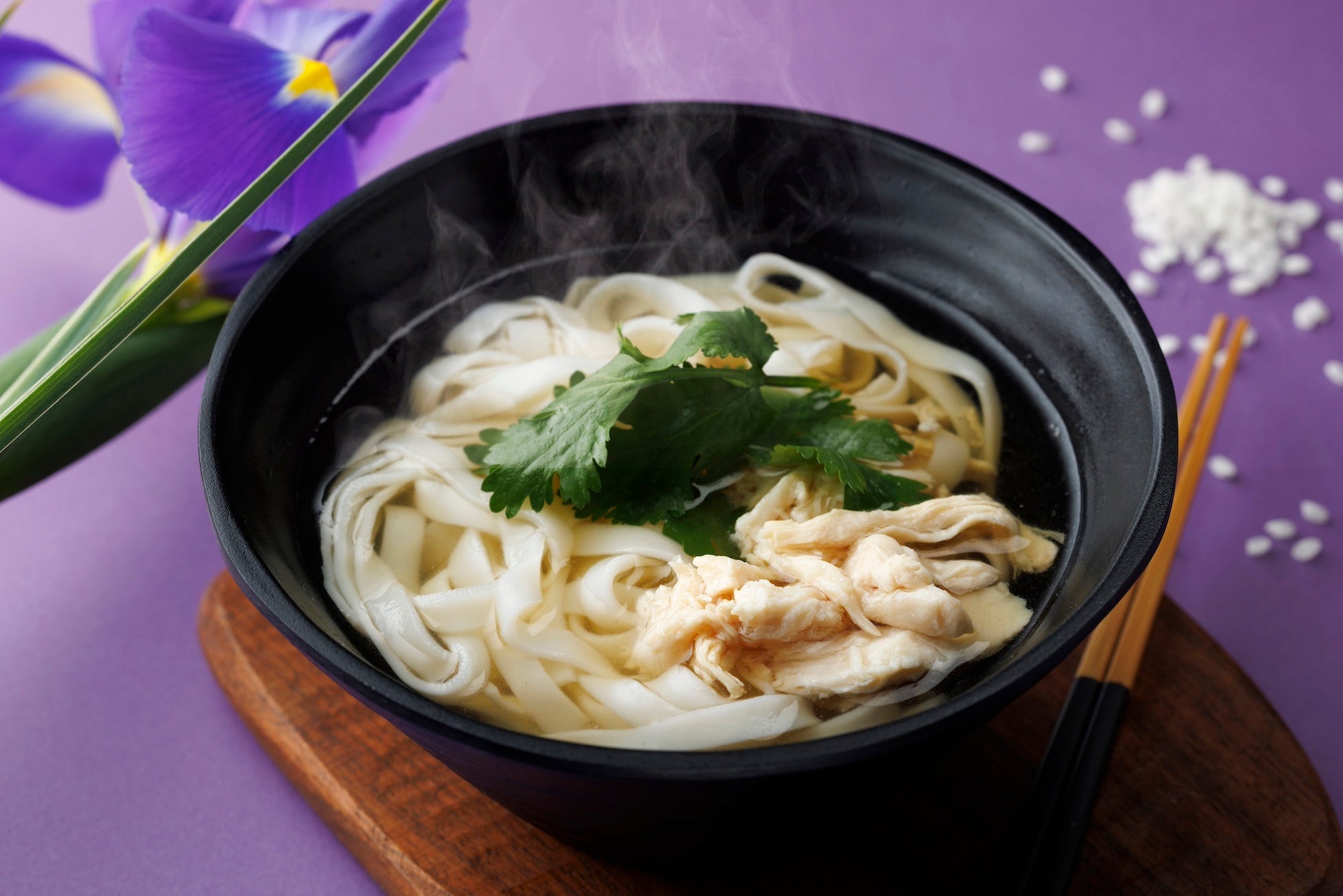 潮来市産の米をベトナム製の製麺機で加工した特許取得の「道の駅いたこ」オリジナルのフォーを、シェフがお客様の前で調理し提供します。つなぎを使わず米粉と水のみで作られた生麺は、柔らかな食感が特長でお米本来の風味を存分に味わうことができます。