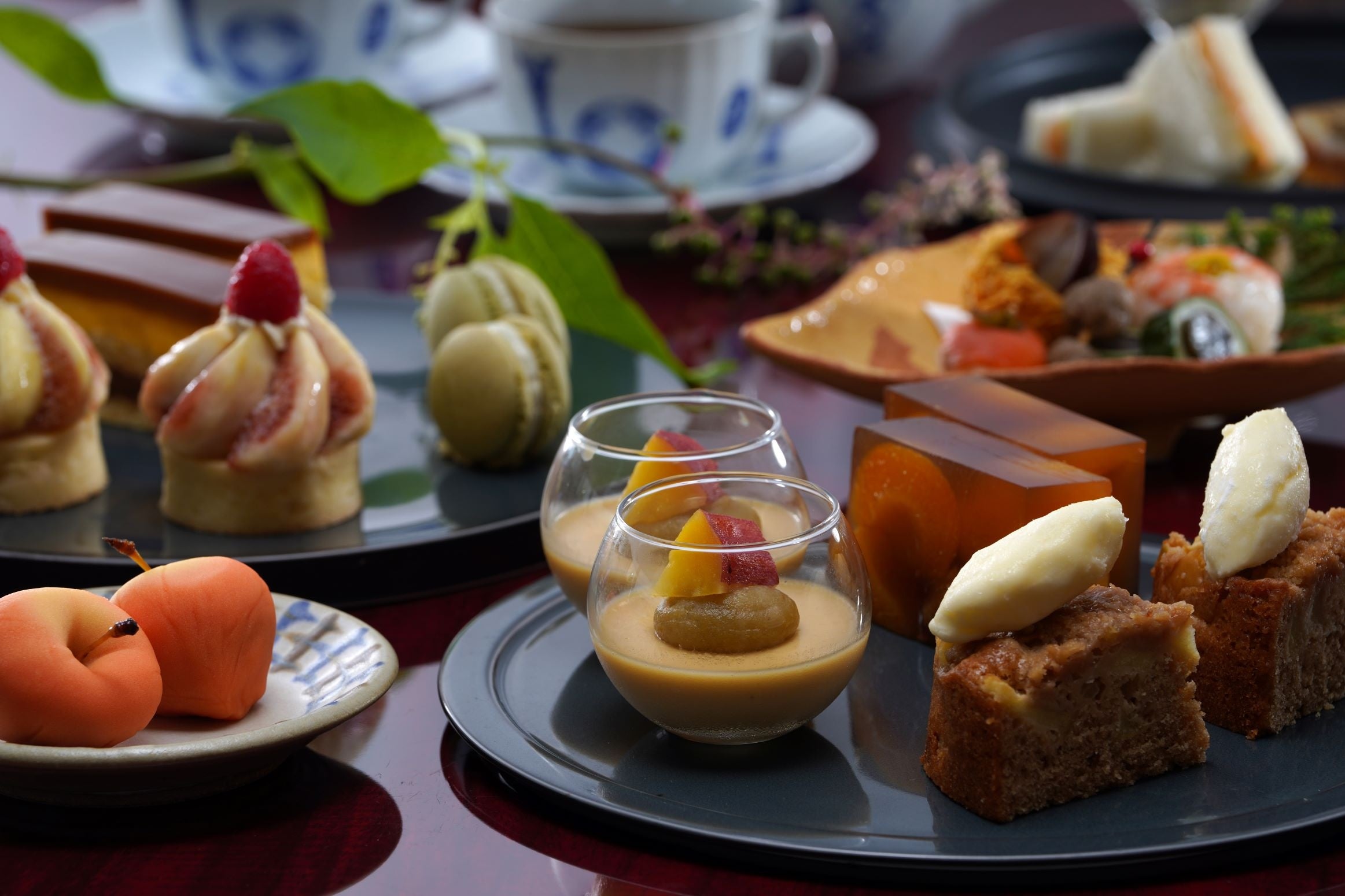 和のセイボリーは、「菊花手毬寿司」や「柿サーモン」、「いが栗」など、秋の恵みを一口ごとに盛り込んだ特別な一皿。普段なかなか味わう機会の少ない趣向を凝らした料理は、味覚だけでなく、目でも季節をお楽しみいただけます。