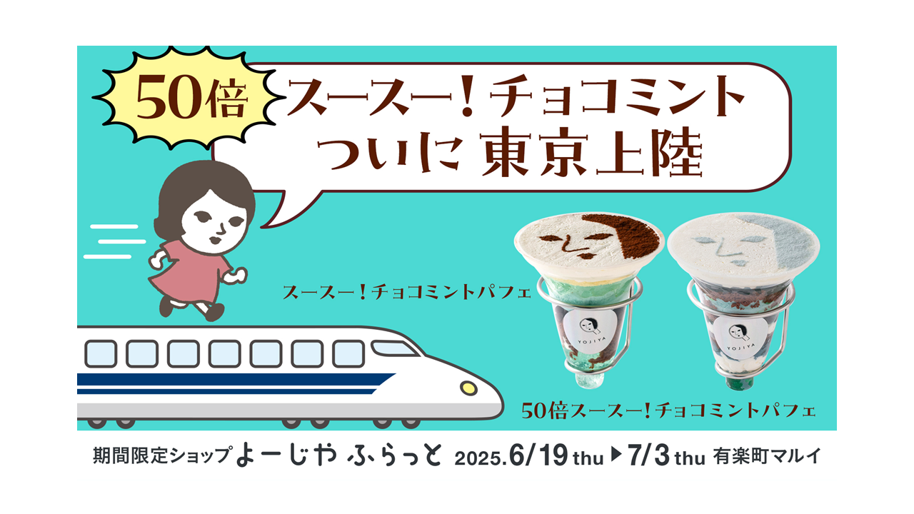 有楽町マルイ(株式会社丸井、本社:東京都中野区、取締役社長:青野 真博)1Fにて、期間限定ショップ「よーじやふらっと」をオープンいたします。「チョコミン党」の間で話題の「よーじやのチョコミントスイーツ」を、京都以外で初めて提供するイベントとなります。通常のチョコミントパフェはもちろん、約50倍量のハッカを使用した「50倍スースー!チョコミントパフェ」をご用意。さらに、ハンドクリームなどのスキンケアアイテムはもちろん、毎年人気の季節限定“ひんやりアイテム”などもご用意しています。
