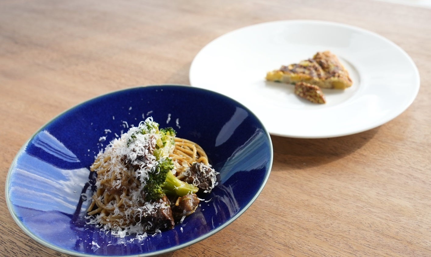 試食会ではレストラン「Sincro」エグゼクティブシェフ 北川理映子が考案した、お届けする食品と冷蔵庫にある食材と組み合わせ、家族で食べられる2~4人分に増やせるレシピから、スパニッシュオムレツ、ビーフシチューパスタのデモンストレーションを披露しました。そのほかお味噌汁の茶碗蒸し、ビーフンサラダ、フレンチトースト、鮭のおむすび、玄米ブレッドのフレンチトーストを試食として提供し、食品を楽しめるバリエーションを多彩に紹介しました。このレシピはすべてKOBE BOX2に同封されており、実際に家庭で作ることができます。レストラン「Sicro[シンクロ]」エグゼクティブシェフの北川理映子は「もしものときも、いつものご飯でも、みんなで食べると笑顔になるようなレシピを考えたいと思いました。KOBE BOX2には味がついていたり、そのまま食べられるように作られたりしている食品がほとんどなので、うまく利用すると加熱や味付けを時間短縮し、レシピを気軽にレベルアップさせることができます。」とメニューを開発した思いを語りました。基本の3食と同様、非常時にはカセットコンロ、ガスボンベ、水、フライパンひとつで調理ができます。