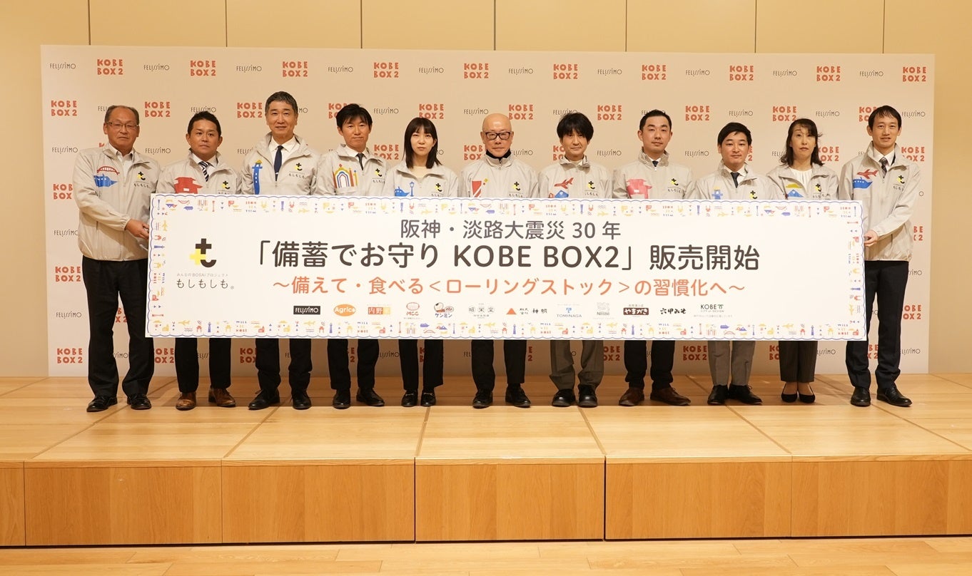 阪神・淡路大震災30年を迎える神戸にて、兵庫のおいしいものを集めた「備蓄でお守りKOBE BOX2」発表会・試食会を開催