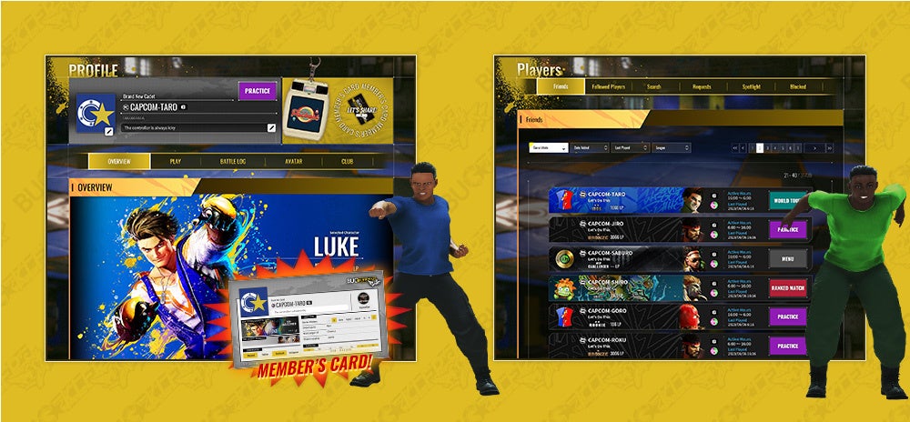 『ストリートファイター6』をより楽しむための機能を詰め込んだ、ゲーム連動サービス「バックラーズブートキャンプ(以下BBC)」も稼働開始! ゲームログイン中には、バトルや冒険、コミュニケーションをより楽しんでもらえるように、自分や対戦相手のプレイデータ、フレンドや所属クラブ、ランキング情報などのデータを、ゲームと連動してチェックできる機能を搭載している。