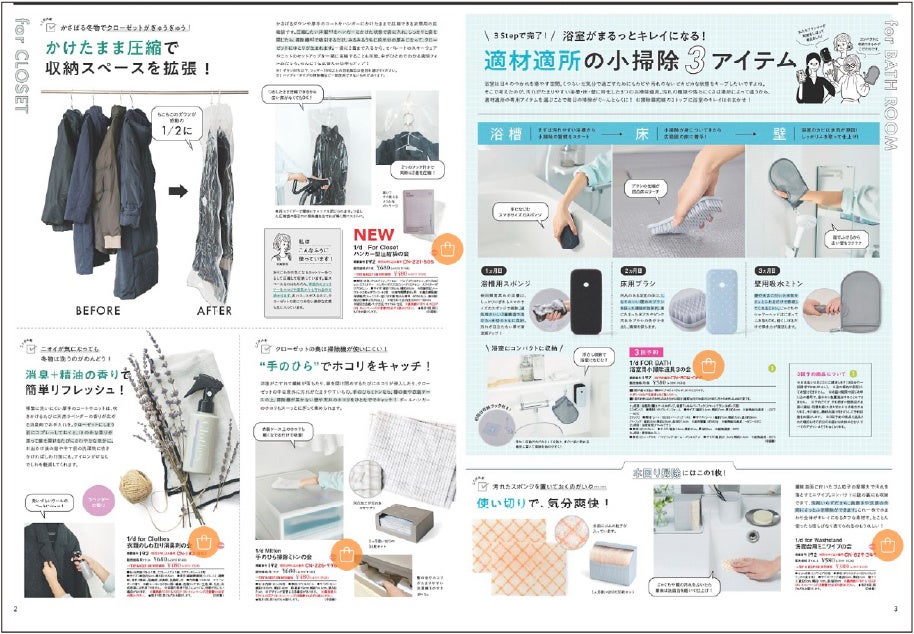 フェリシモが展開する、汚れをためない“予防家事(R)”の習慣化を応援するハウスキーピングブランド「Once a day[ワンス ア デイ]」は、冬の日々の衣類のお手入れや面倒な掃除を解消する工夫の詰まった新作アイテムを発表、11月14日よりウェブ販売を行っています。新作は、クローゼットに吊るすだけで、大切な洋服をカビやニオイから守る「クローゼット用除湿剤」や、ダウンやコートをハンガーにかけたままで掃除機で吸引をして省ペース化することができる「ハンガー型圧縮袋」です。アイテムの詳細は、特集ページやデジタルカタログでチェックできます。そのほかにも「収納ボード」や「しわ取り消臭剤」、「掃除ミトン」や、浴室用の「小掃除道具」など、かさばる衣類や年末の水回りの大掃除に活躍するOnce a dayシリーズアイテムをデジタルカタログで紹介しています。お得なお試しプライスで購入できる特別価格キャンペーンも実施しています。