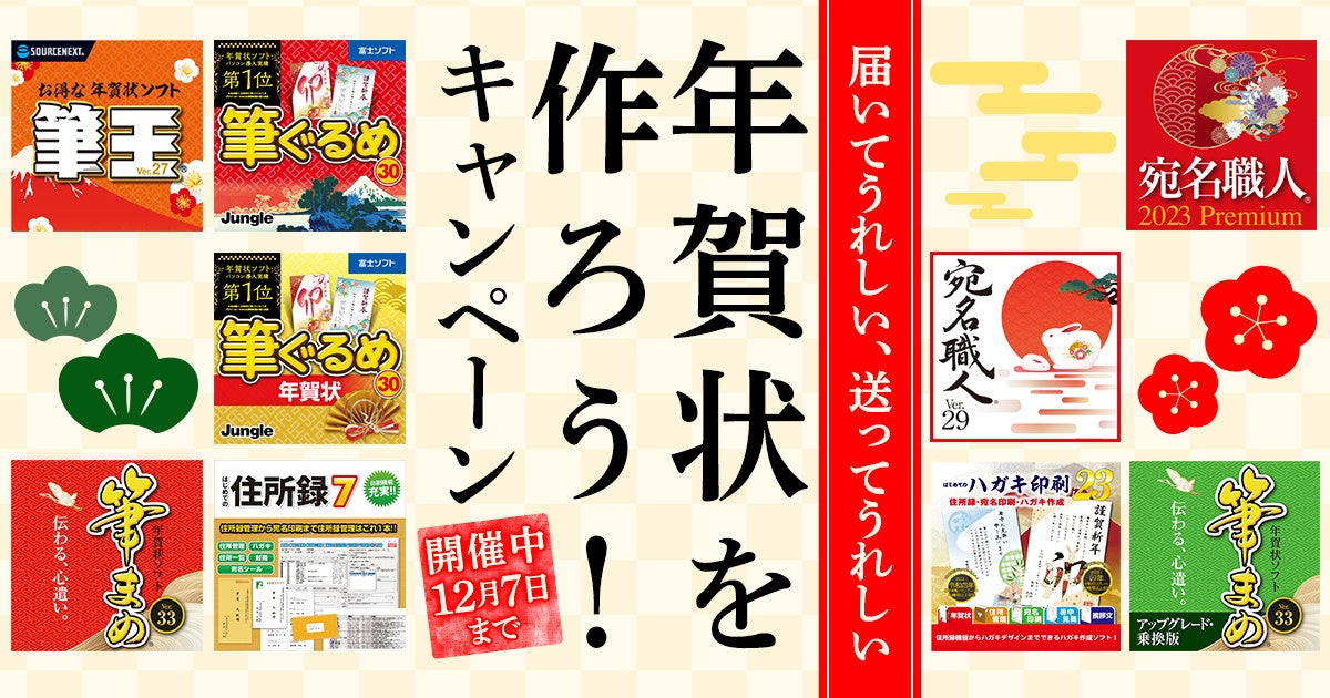 年賀状のデザインや宛名書きが簡単にできるソフト各種が割引中です。