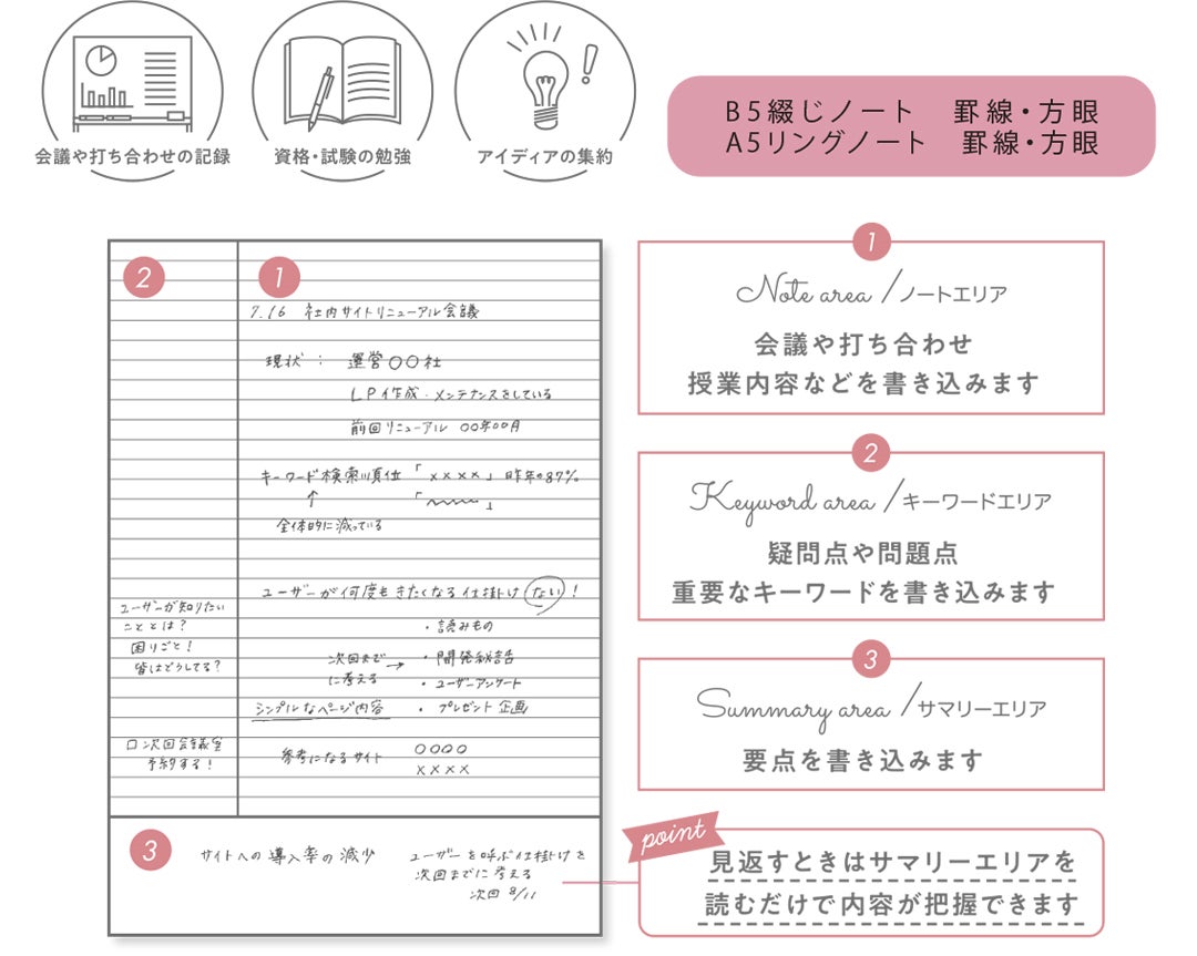 株式会社学研ホールディングス(東京・品川/代表取締役社長:宮原博昭)のグループ会社で、文具や知育玩具のメーカーである株式会社学研ステイフル(東京・品川/代表取締役社長:福本高宏)で、究極の情報整理ノートシステム『コーネルメソッドノート』のsimple&sweetなテイストのシリーズを1月20日に発売しました。