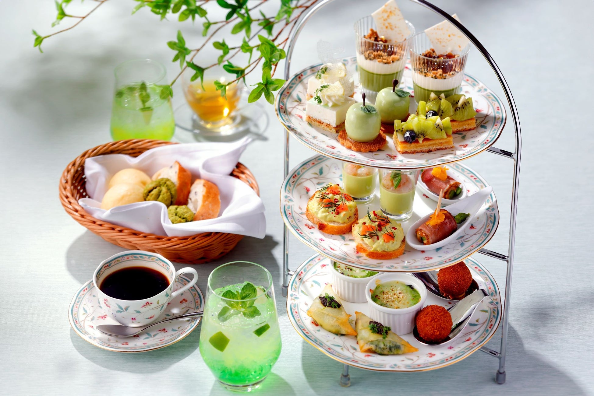 新緑をテーマに、多彩な味わいのスイーツや軽食が楽しめるアフタヌーンティーセット。3段ティートレイでご提供します。
