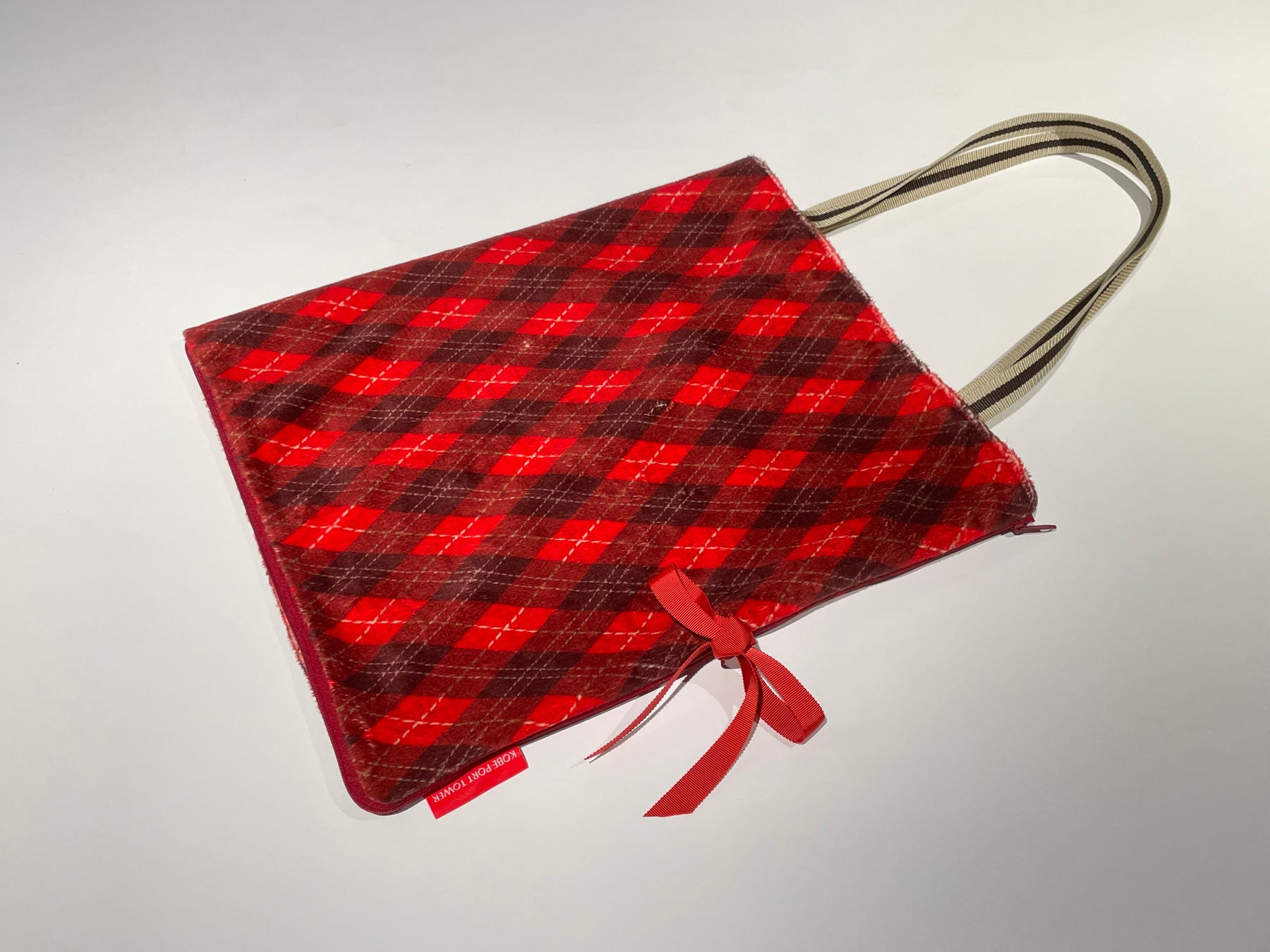 クリスマスシーズンや冬のお出かけに、バッグのファスナーを開くとブランケットになるトートバッグです。神戸ポートタワーをイメージした〈神戸ポートタワーチェック〉柄が印象的。表も内側も起毛素材を用いており、肌寒い季節のお出かけ先でサッと広げるとあたたかなブランケットに変身します。バッグとして、また丸めてポートタワーっぽく、お出かけをするのに持ち歩いて便利に使えます。お買い物の際には、ファスナーを閉めるとB4サイズが入るトートバッグとしても使えます。冬場のアウトドアイベントやスポーツ観戦に見た目もあたたかく便利です。