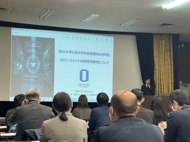 国立大学法人岡山大学(本部:岡山市北区、学長:那須保友)は、2026年1月22日に大阪合同庁舎にて開催された「令和7年度大学等向け安全保障貿易管理説明会(大阪会場)」において、研究・イノベーション共創機構産学官連携本部の舩倉隆央副本部長が登壇。舩倉副本部長は、大学実務の現場における先進事例として、本学における安全保障貿易管理とAIエージェント活用の取り組みを紹介し、その有効性と今後の展開の可能性について提言しました。