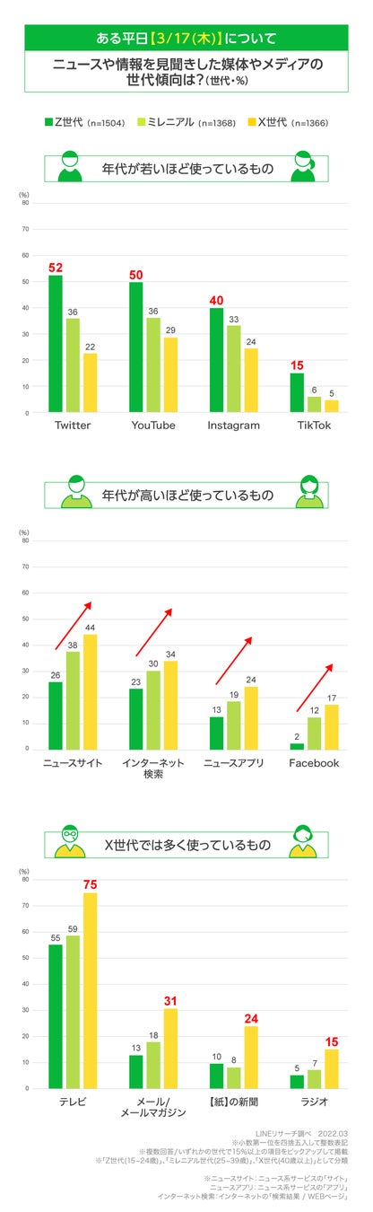 【LINEリサーチ】ニュースや情報を見聞きした媒体・メディア、Z世代では約半数が「Twitter」や「YouTube」を利用
