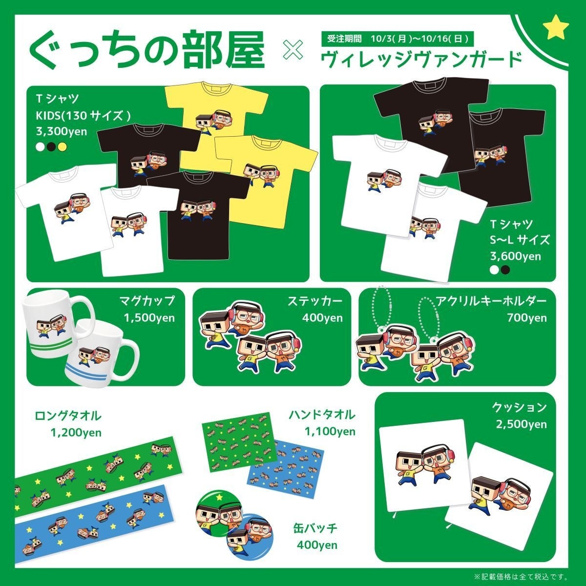 『ぐっちの部屋』コラボグッズ¥4,000(税込)ご購入ごとに1口、特典キャンペーンにエントリーいただけます。