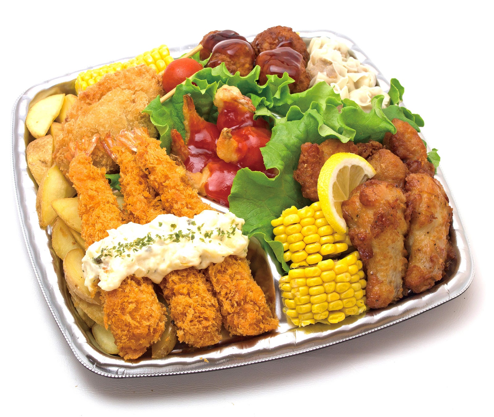 エビフライ、エビチリ、唐揚げ等人気の商品の盛合せです。