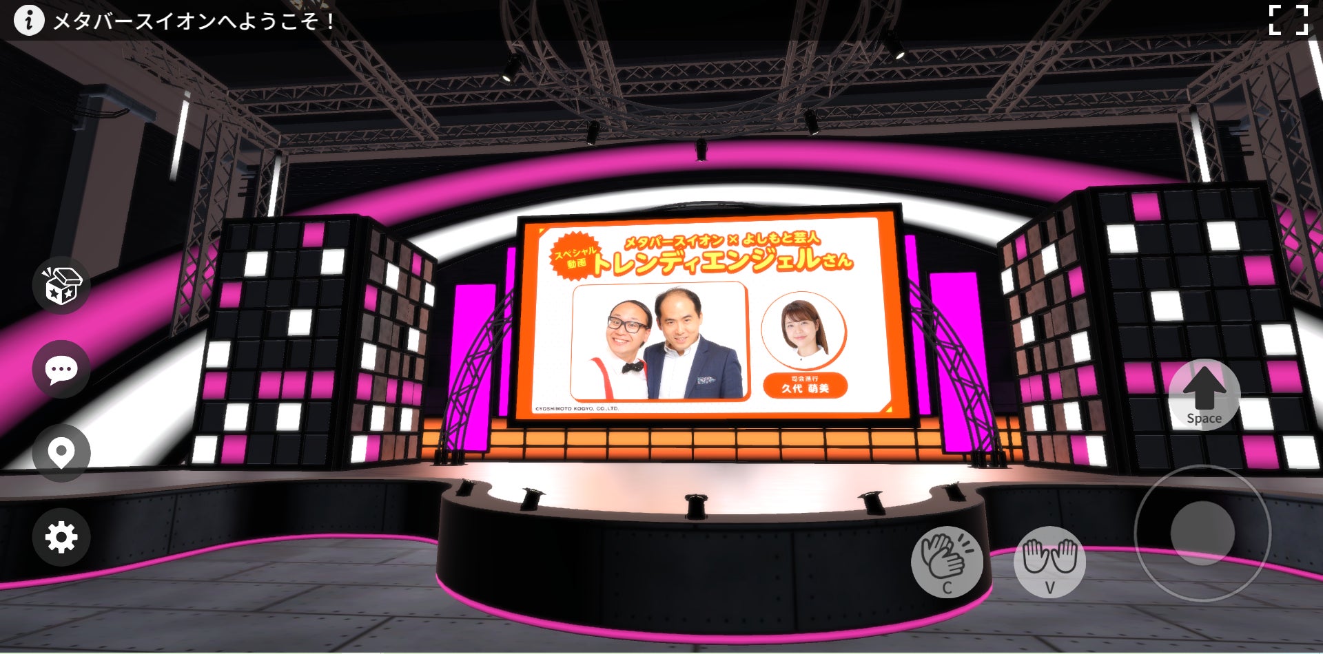 店頭掲示の「入室コード」を入手し、メタバース空間のライブホールに入室するとよしもと芸人とコラボの限定動画が閲覧できます。