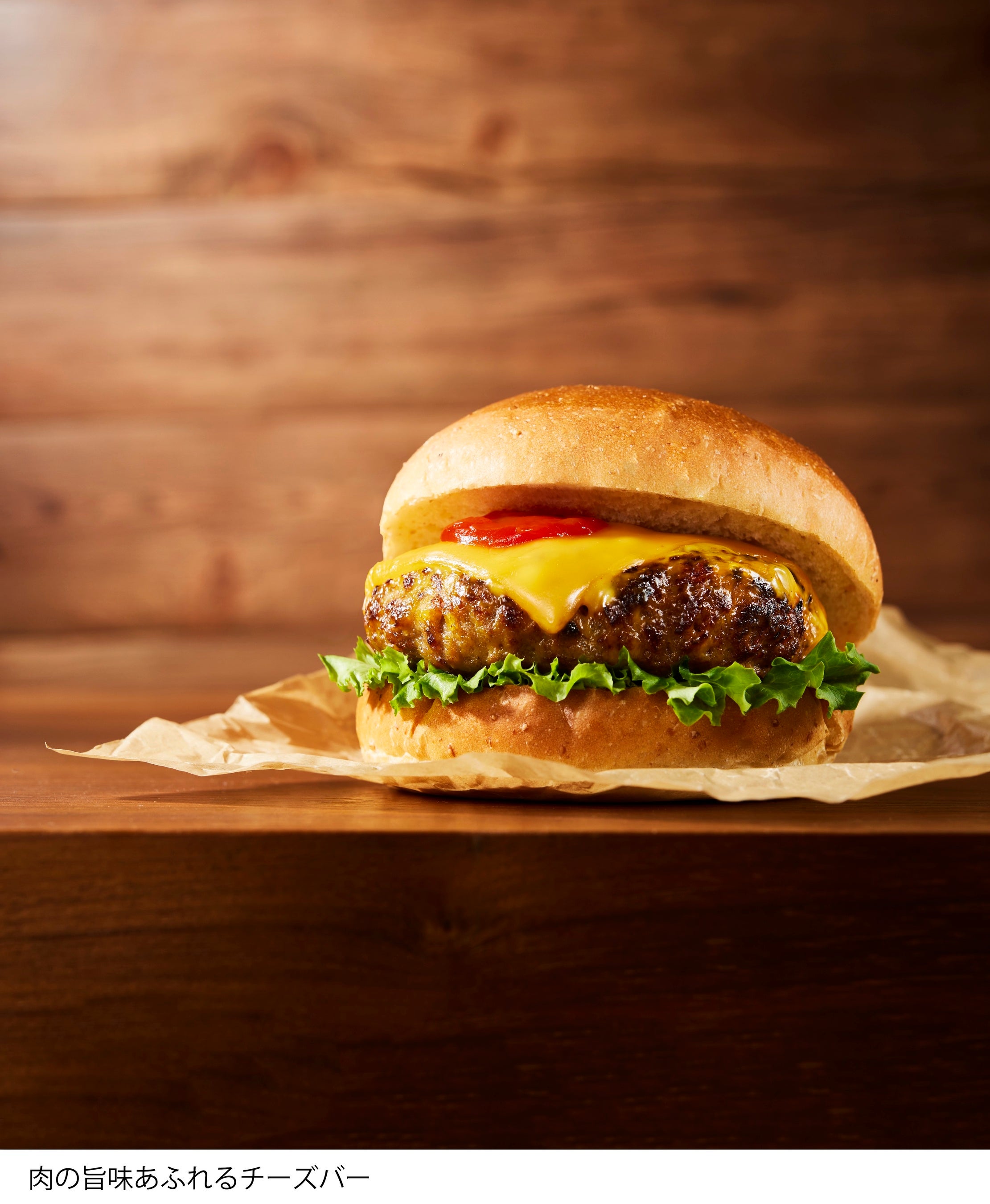 厚みのあるハンバーグにもっちり食感のバンズを合わせ、こだわり食材で店内手づくりをした食べ応えのあるチーズバーガーです。