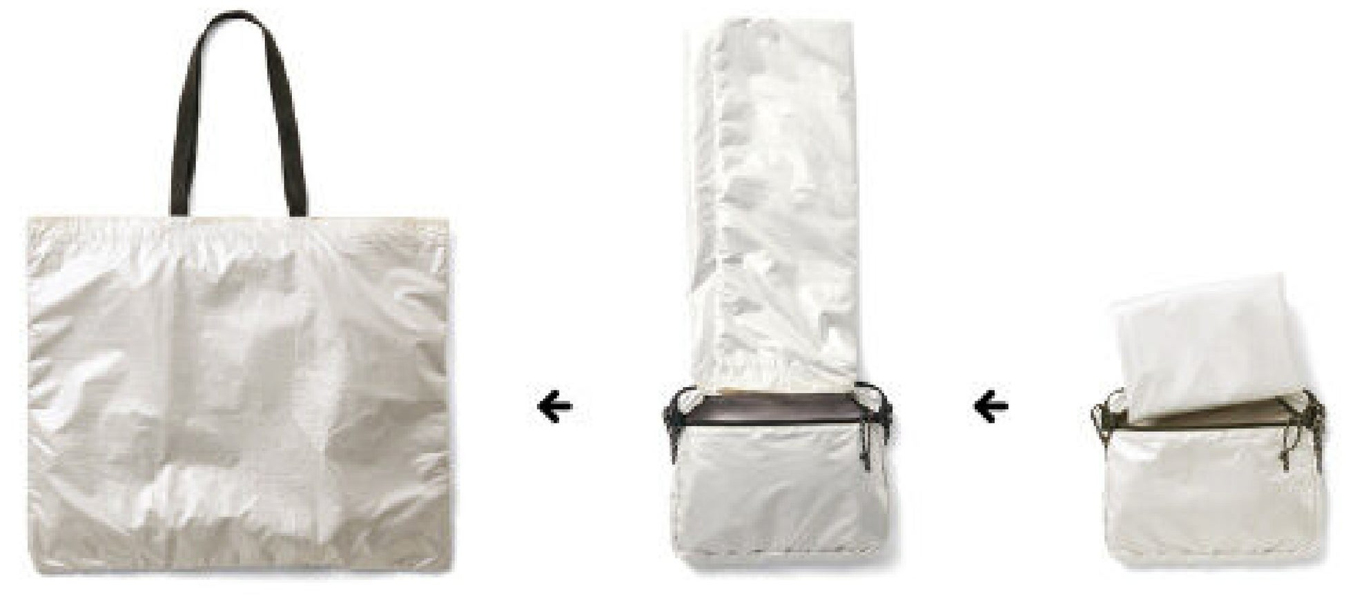 ショルダーと大容量トートの2通りで使える2-WAYバッグです。ストラップ調整でコンパクトなショルダーに、袋を出して返すと大容量トートに変身します。薄手で軽量ながら裏地付きでしっかりした作りです。