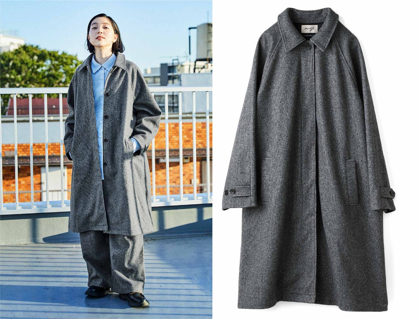 【NEW】THREE FIFTY STANDARD 小谷 実由さんと作った 細かいチェック柄のアンクルコート〈グレー〉