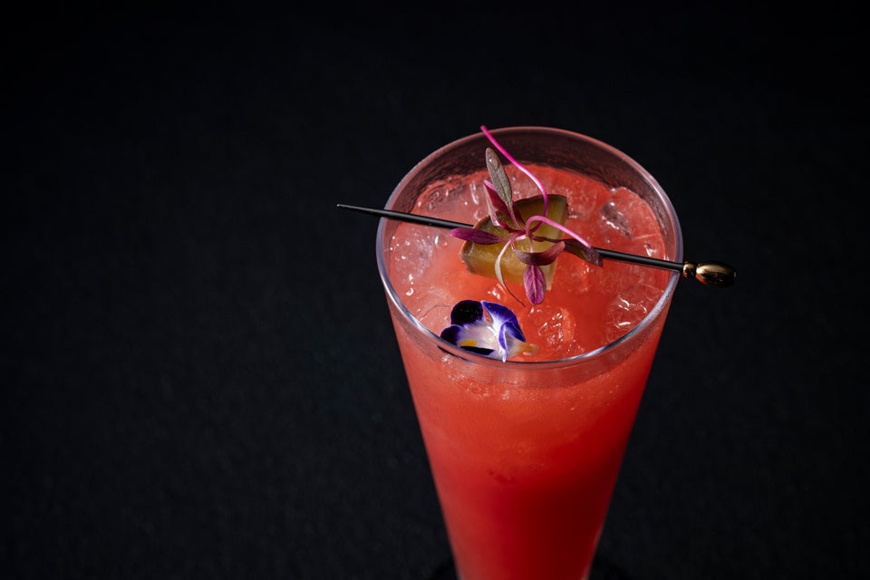 1,800円(カクテル・モクテル) 大阪府産さつまいも『夢シルク』を使用した芋焼酎「阿呆-ahou-」をベースにしたカクテル。地中海の香り漂うブラッドオレンジと和の組み合わせをお楽しみください。