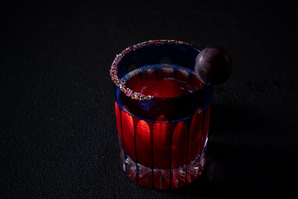 1,800円(カクテル・モクテル) 大阪エクセルホテル東急のコンセプト・万華鏡をイメージしたカクテル。天満切子のグラスの美しいカッティングもお楽しみください。