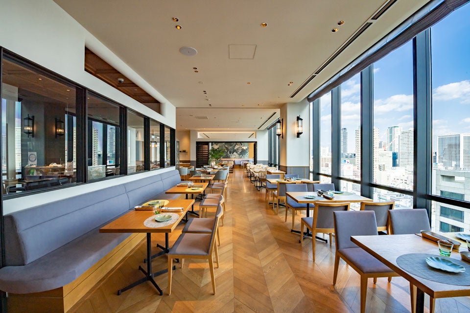 東急の最上階・17階にある レストラン。御堂筋を望む大きな