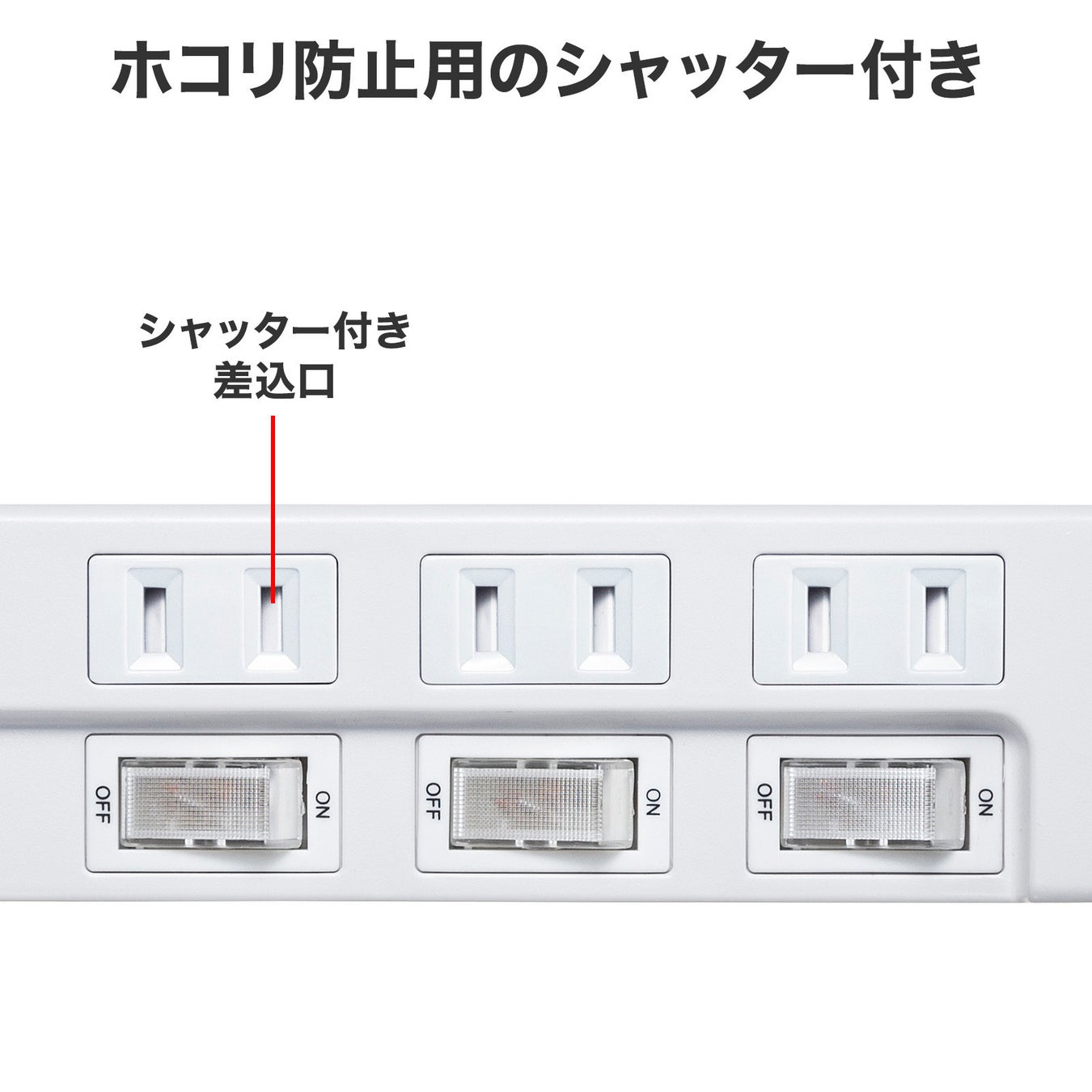 差込口にシャッターが付いていおり、未使用時にホコリが侵入するのを防ぎます。ホコリの侵入によって引き起こされる火災の防止に効果的です。