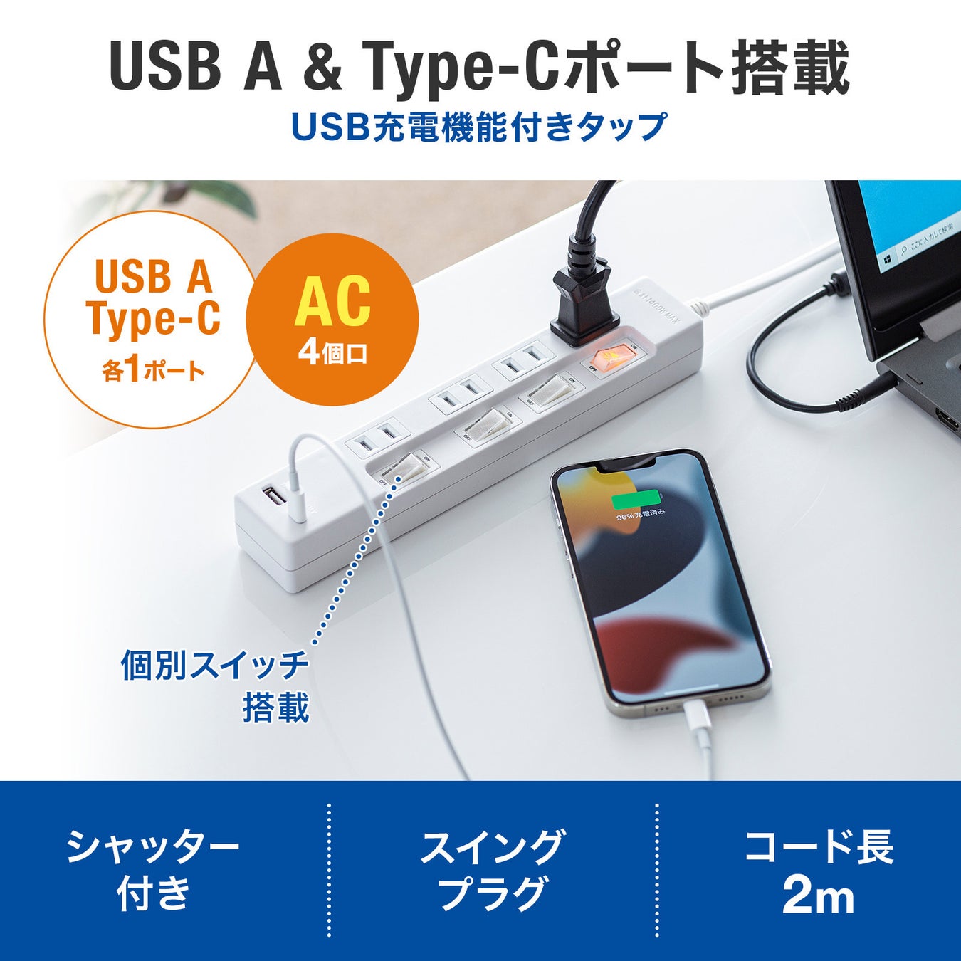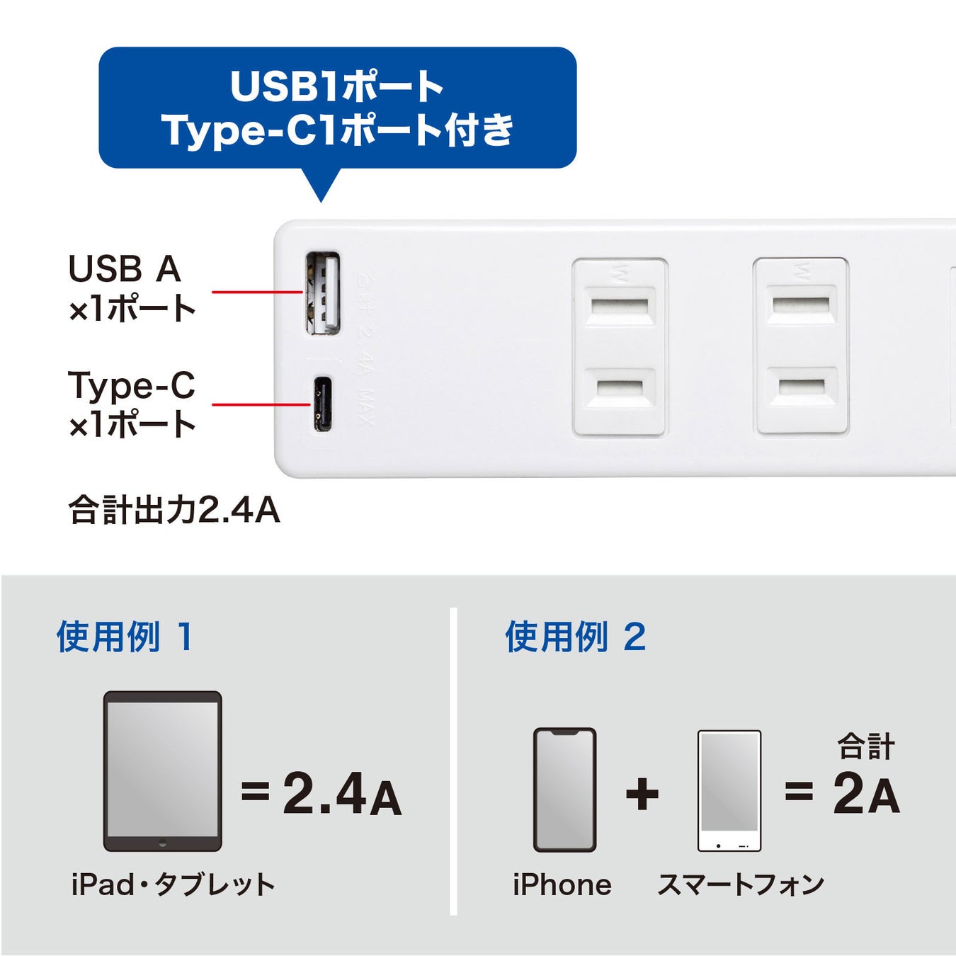 USB AとUSB Type-Cの2つのポートを搭載した電源タップを発売