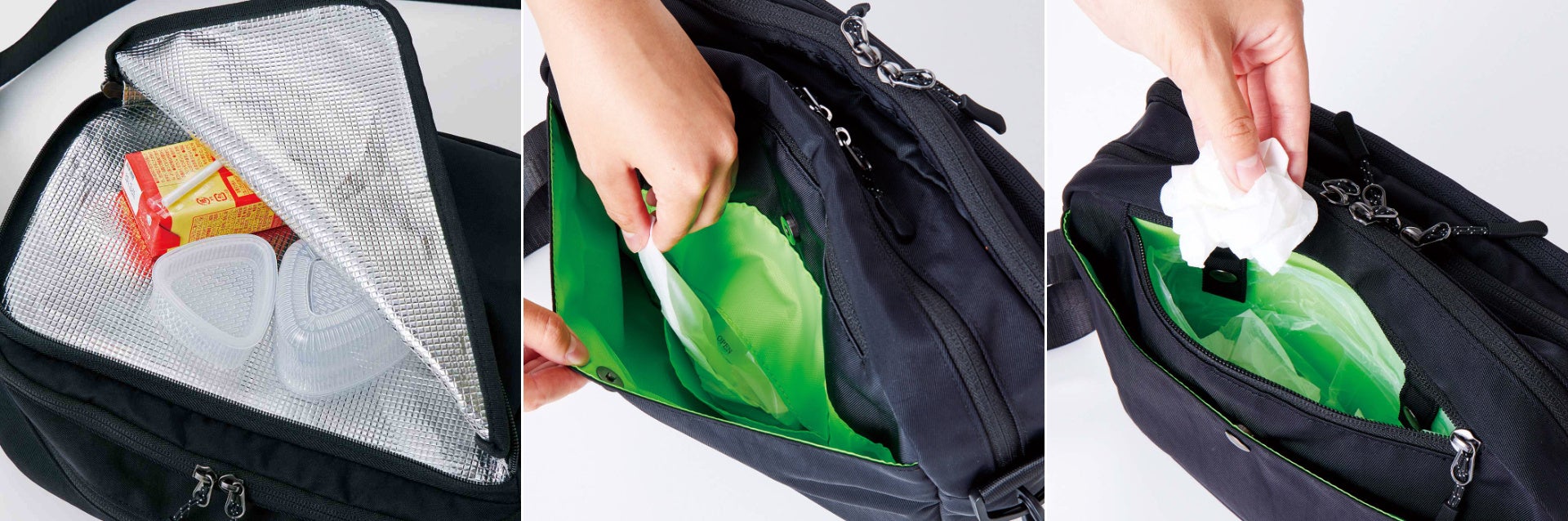 ◆おやつもジュースもIN! 保冷ポケットがある仕分け上手な3部屋ポイッシュバッグ