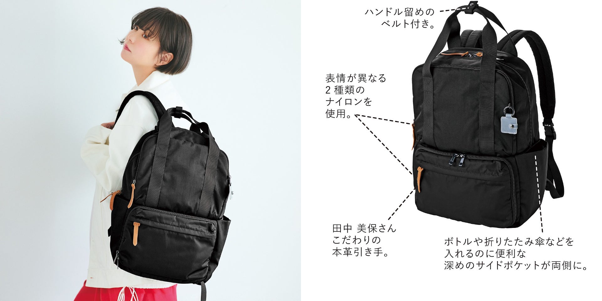 【NEW】田中美保さん×ラミプリュス 仕分けたい荷物がスイスイ! ワンフロアにもなる2階建てリュック〈ブラック〉