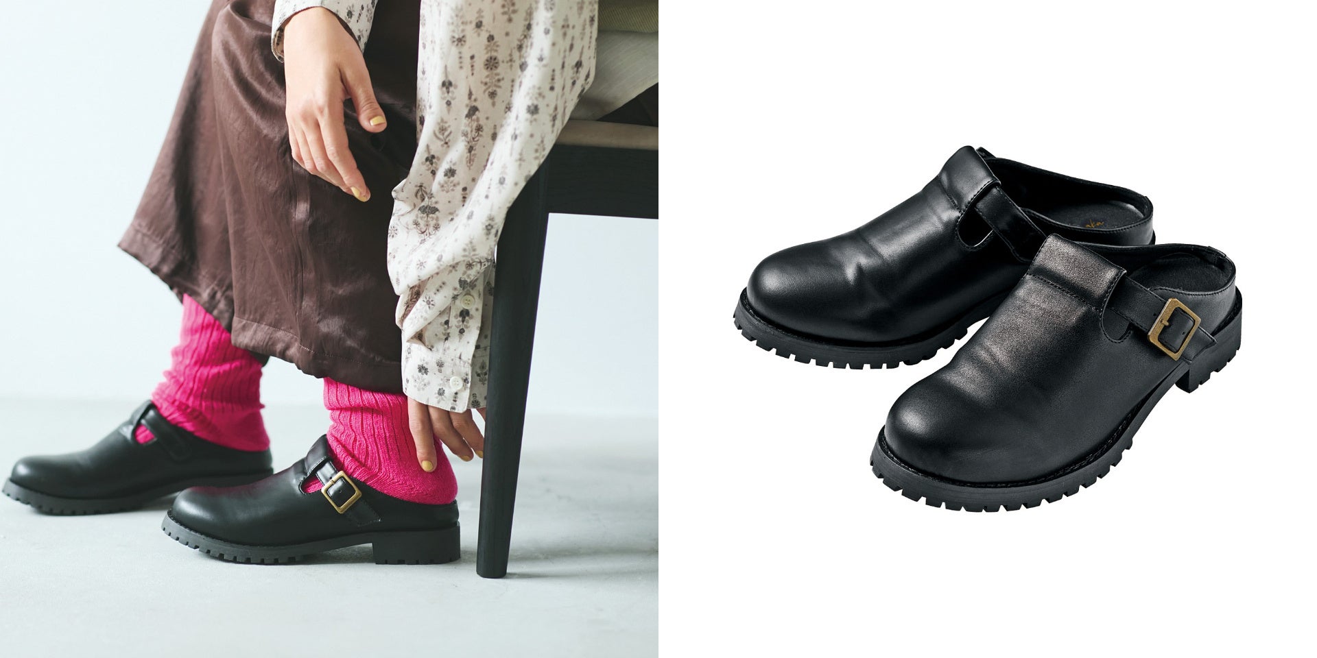 きちんと感があって、立ったままでもらくにはける本革風スリッポンデザインのシューズです。屈曲性のソールなので、歩きやすさも抜群。ふかふかのインソールに甲の内側のメッシュ素材など、足あたりも快適です。足もとからコーデをスタイリッシュに引き締めてくれるので、いつもスニーカーばかりという方にもおすすめです。きれいめスタイルにもなじむ、ごつめのソールデザインもポイントです。