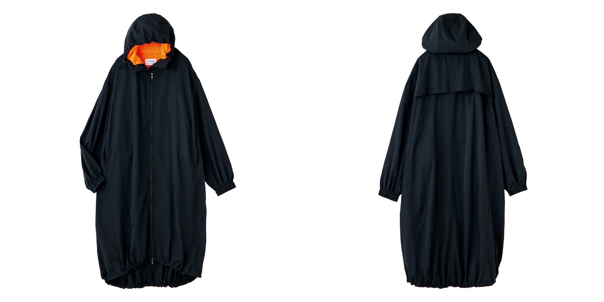 【NEW】田中美保さん×ラミプリュス コクーンシルエットも楽しめるやわらか撥水コート〈ブラック×オレンジメッシュ〉